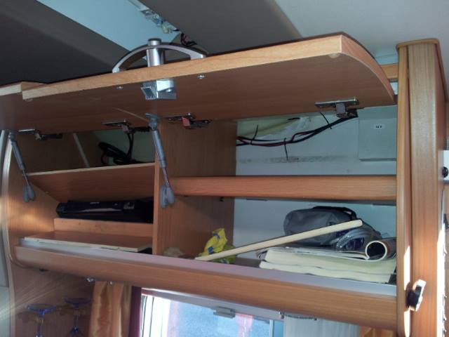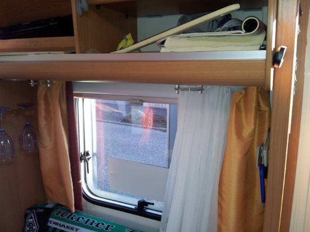 da hinter kam das wasser gelaufen im hängeschrank über der rechten sitzbank. sogar die deckenleute hab ich geöffnet