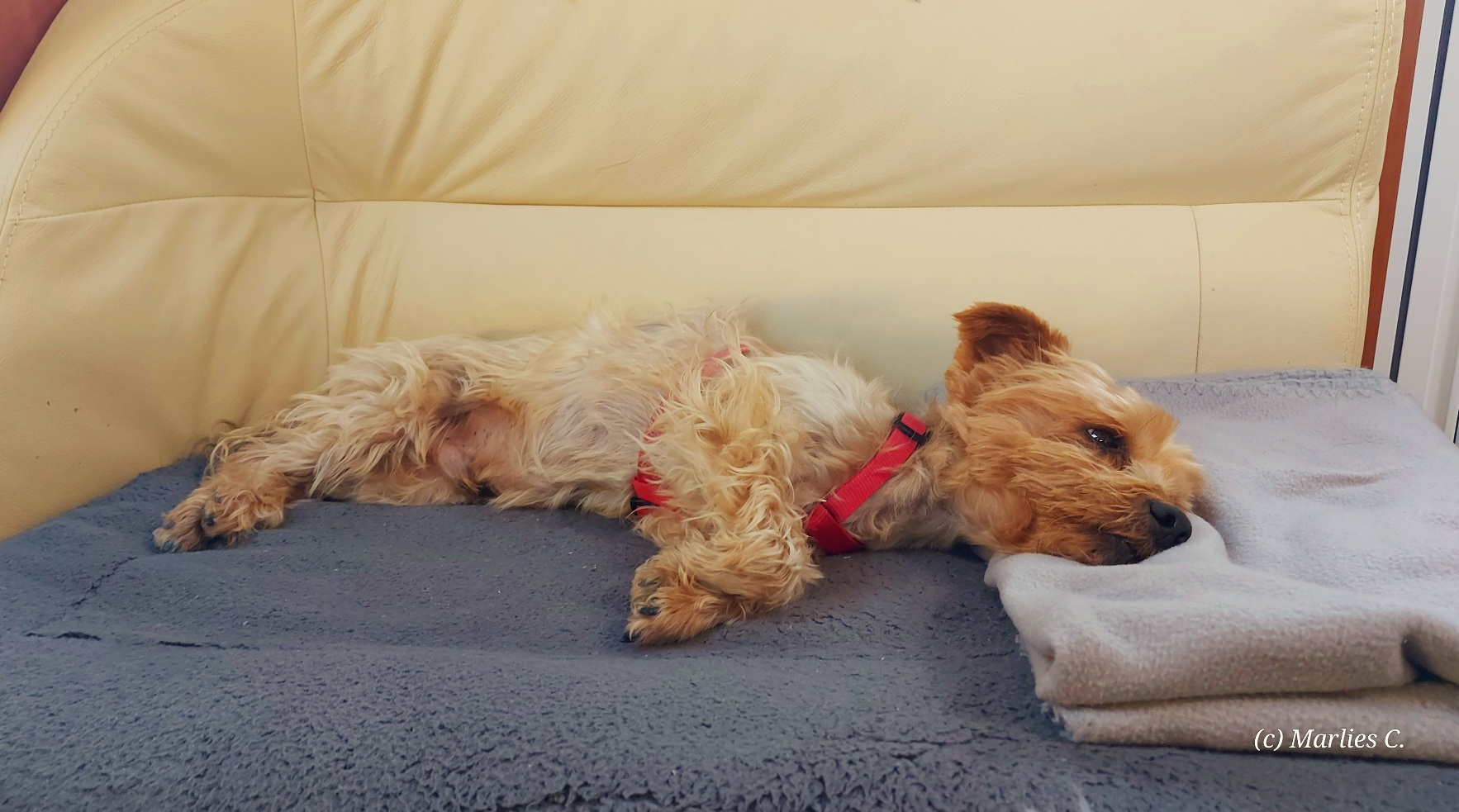 trotzdem gingen wir mit Spiky spazieren und er fing an die wilden Katzen zu jagen, das bei dem Wind, danach sah er so aus 🤣😂🙂
