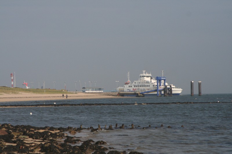 Die Syltfähre sollte eigentlich um 10.30 Uhr ablegen, kam aber erst 10.20 Uhr in Havneby an und das Entladen und Aufladen dauerte ca. eine halbe Stunde. Um 10.50 Uhr war der letzte Wagen auf der vollen Fähre drauf und es hieß Leinen los nach List.