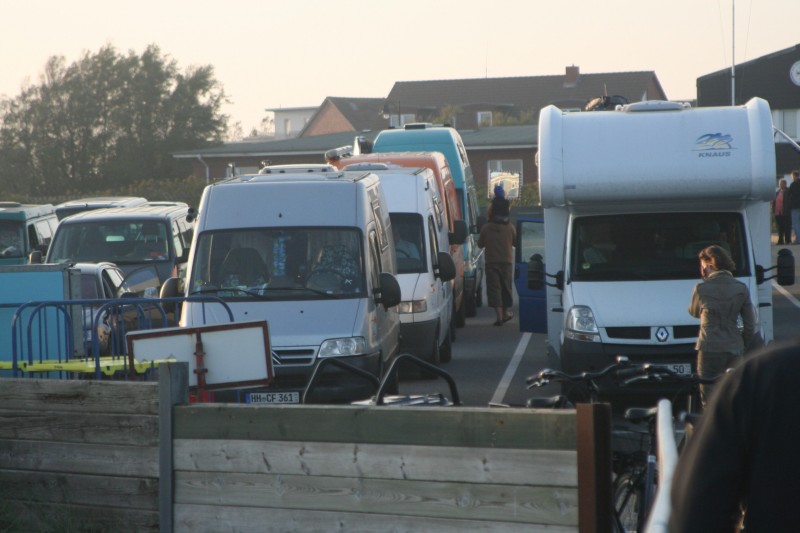 Für den 3. Oktober 2011 haben wir uns einen Platz auf der letzten Fähre nach Romo gebucht. Wir sind recht zeitig vor Ort gewesen und standen somit in erster Reihe.