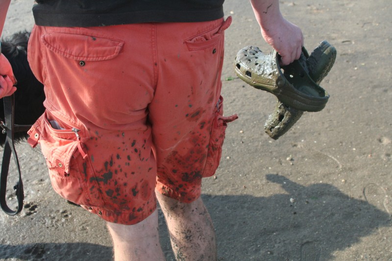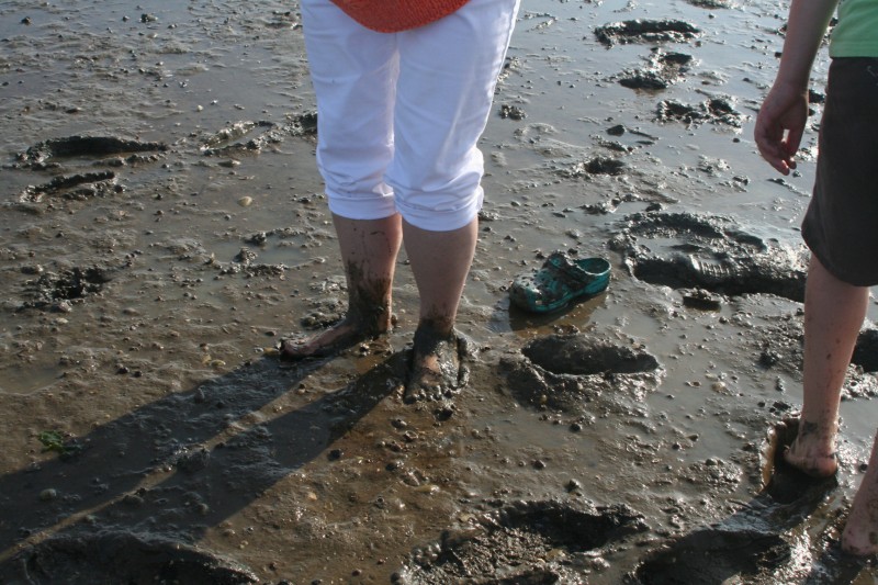Gegen 14 Uhr ging es dann wieder zurück in Richtung Campingplatz. Vorher noch die Schuhe saubermachen und vom Schlick befreien. Fast wären die Schuhe von Oliver noch im Watt in ca. 50 cm Tiefe versunken. Dank Felix konnten sie weider ausgegraben werden.