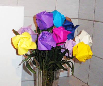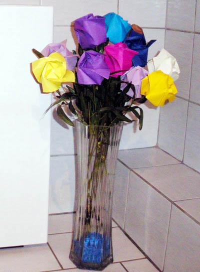 Deine Papierblumen sind sehr schön und das ist eine echte Alternative, gegenüber echter Blumen. Lange Lebensdauer, ist nicht schlimm wenn sie kein Wasser bekommen und sind dazu noch leicht im Gepäck.